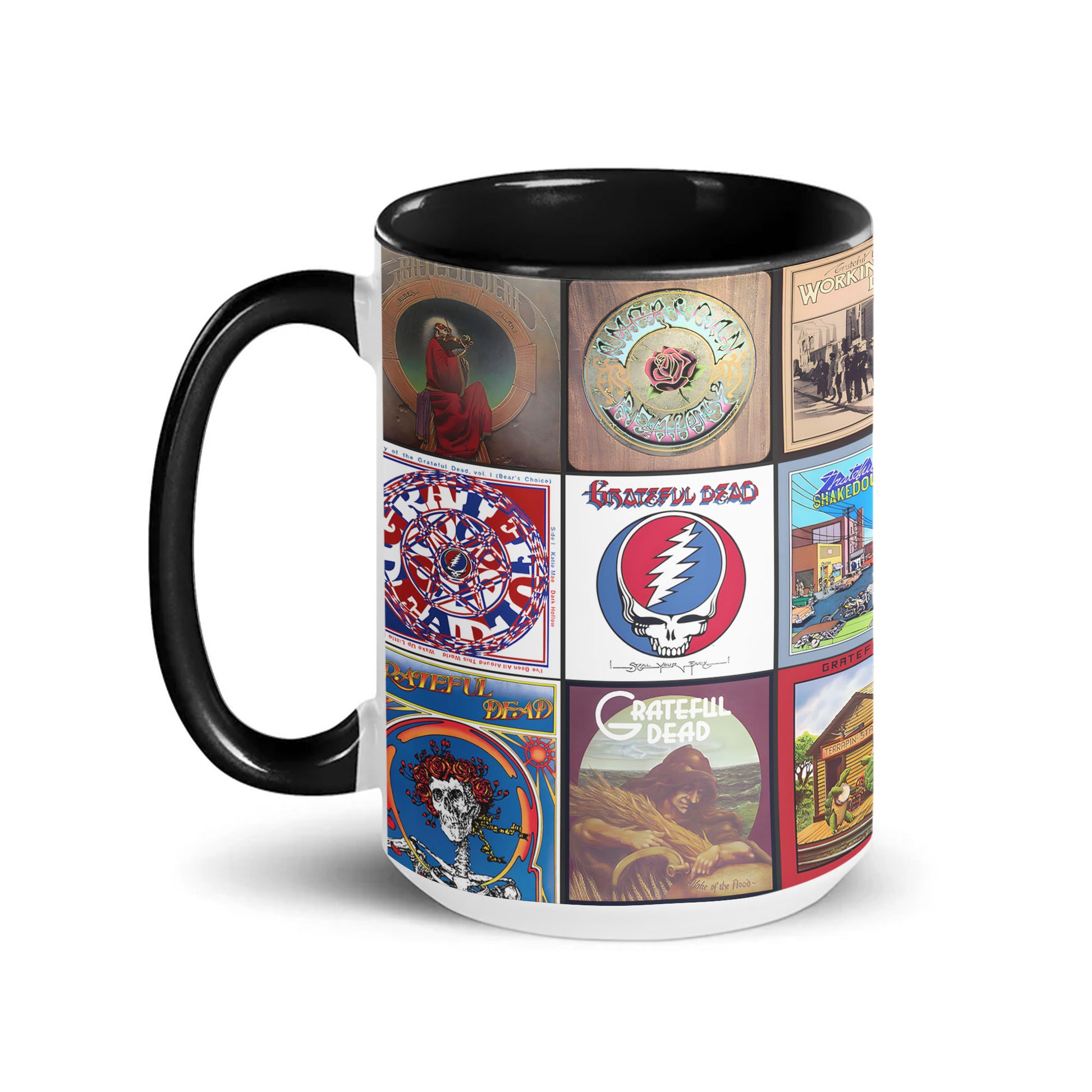 Start your day with the free-spirited energy of the Grateful Dead. This Accent Mug features a vibrant collage of the band’s iconic album covers — celebrating their legendary jams, trippy artistry, and timeless rock legacy. Perfect for Deadheads who live for music and good vibes.