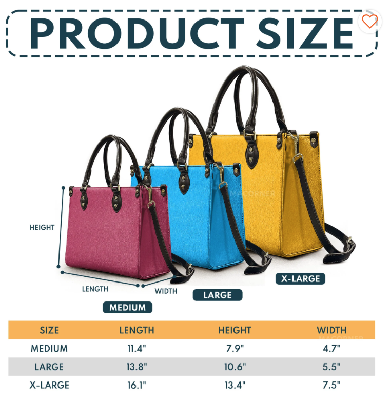 Size Guide Leather Handbag :
