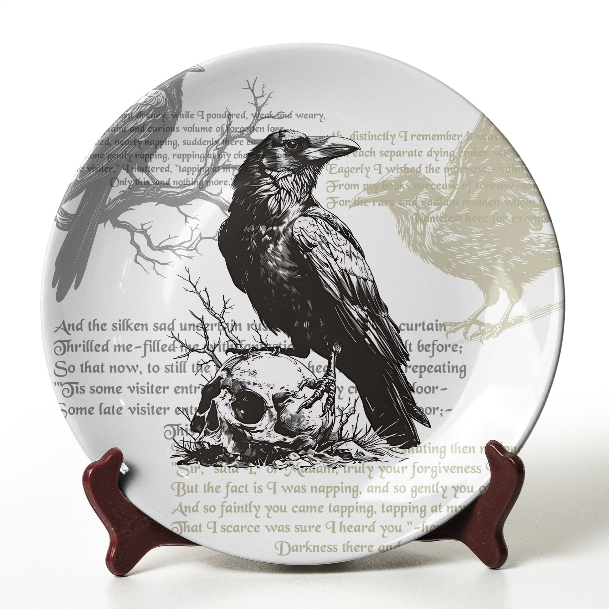 “Nevermore” Raven & Skull Decorative Ceramic Plate – Inspired by Edgar Allan Poe