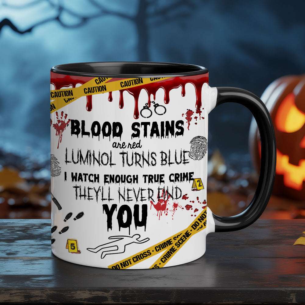 True Crime Inspired Mug – Funny Blood Stains Quote Coffee Cup